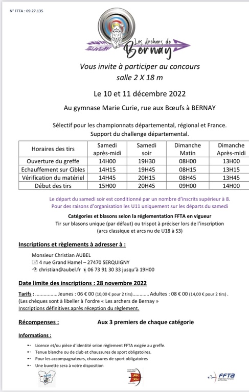 Concours salle 2x18m Bernay
