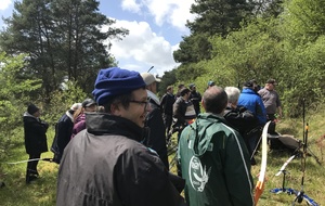 La Compagnie des Archers de l’ALM Evreux a un nouveau Roy et une nouvelle Roitelette. En effet, samedi 27 Avril, près de cinquante Archers et accompagnateurs ont participé au Tir au Roy dans le cadre de la forêt du Boulay Morin. Cette tradition qui remonte au moyen âge consiste à ce que les Archers se mesurent chaque année dans l’exercice de leur art pour atteindre à distance respectable un petit oiseau artificiel. Cette année Jean Mulot et Mélanine Tariquet remettaient en jeu leurs titres de Roy et Roitelette de la Cie. Christophe Faisnel a remporté brillamment le titre de Roy dès le second tir et Eléanore Bruère a gagné le titre de Roitelette à l’issue d’une rude bataille des jeunes Archers. Le Capitaine Didier Le Goff a félicité les nouveaux couronnés et remercié l’ensemble des participants qui ont contribué au bon déroulement de la manifestation dans la bonne humeur malgré une météo peu clémente.