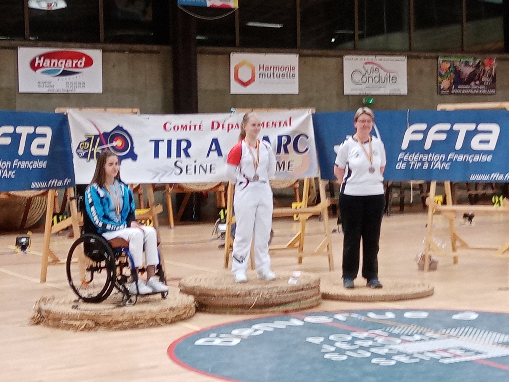 Championnat Régional à NOTRE DAME DE GRAVENCHON Mary Flore Vice Championne de Normandie Senoir 2 arc à poulie Séléna Championne de Normandie femme scratch.